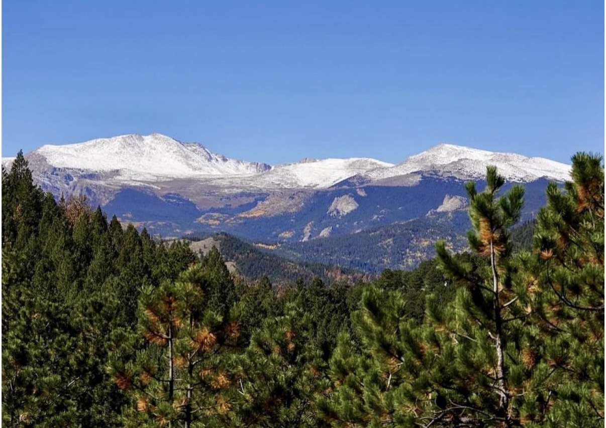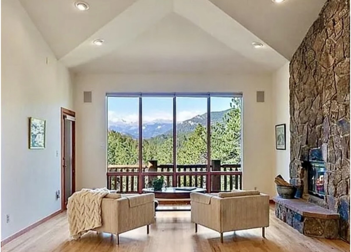 Back to this home…it sits on 11 acres with incredible views of Mount Blue Sky (used to be Mount Evans) from the living room and large exterior wrap around deck.